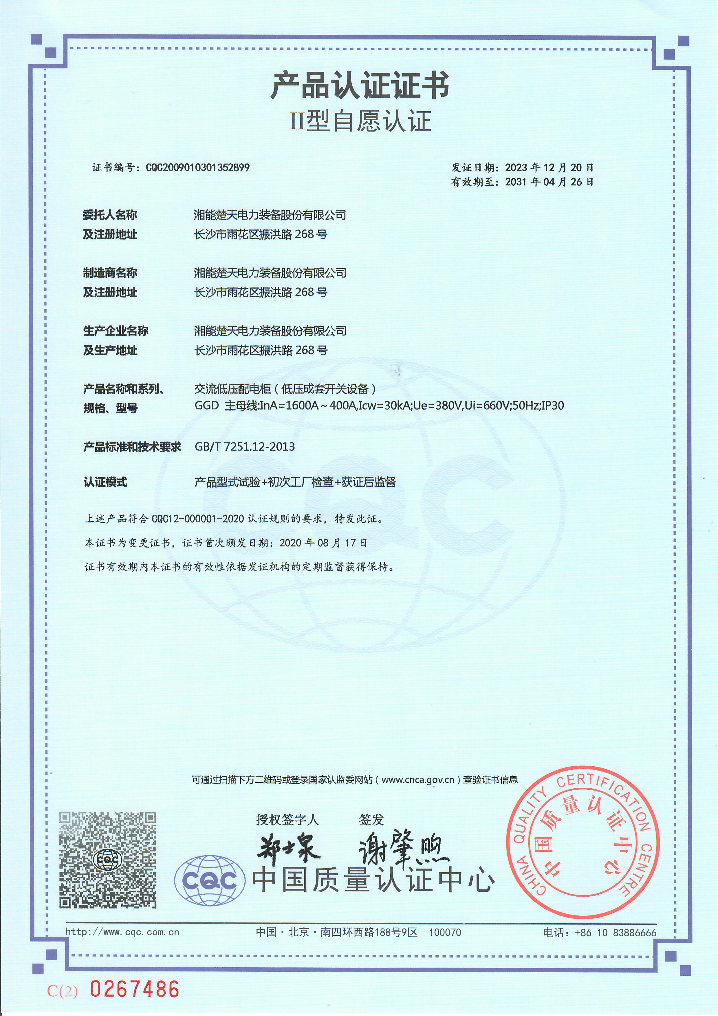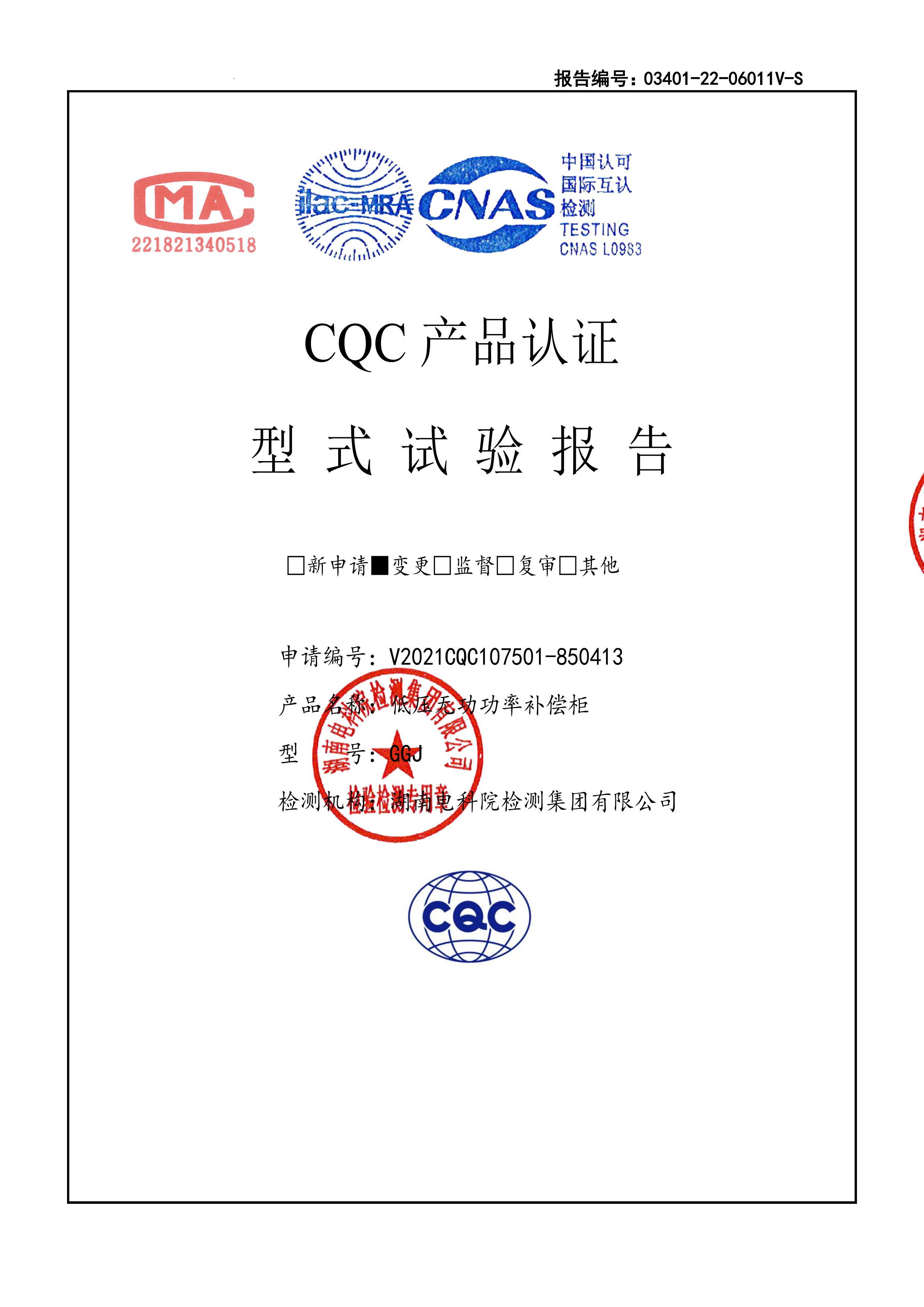 試驗報告(交流低壓配電柜 V2024CQC107501-1299856 GGD 1600A) -