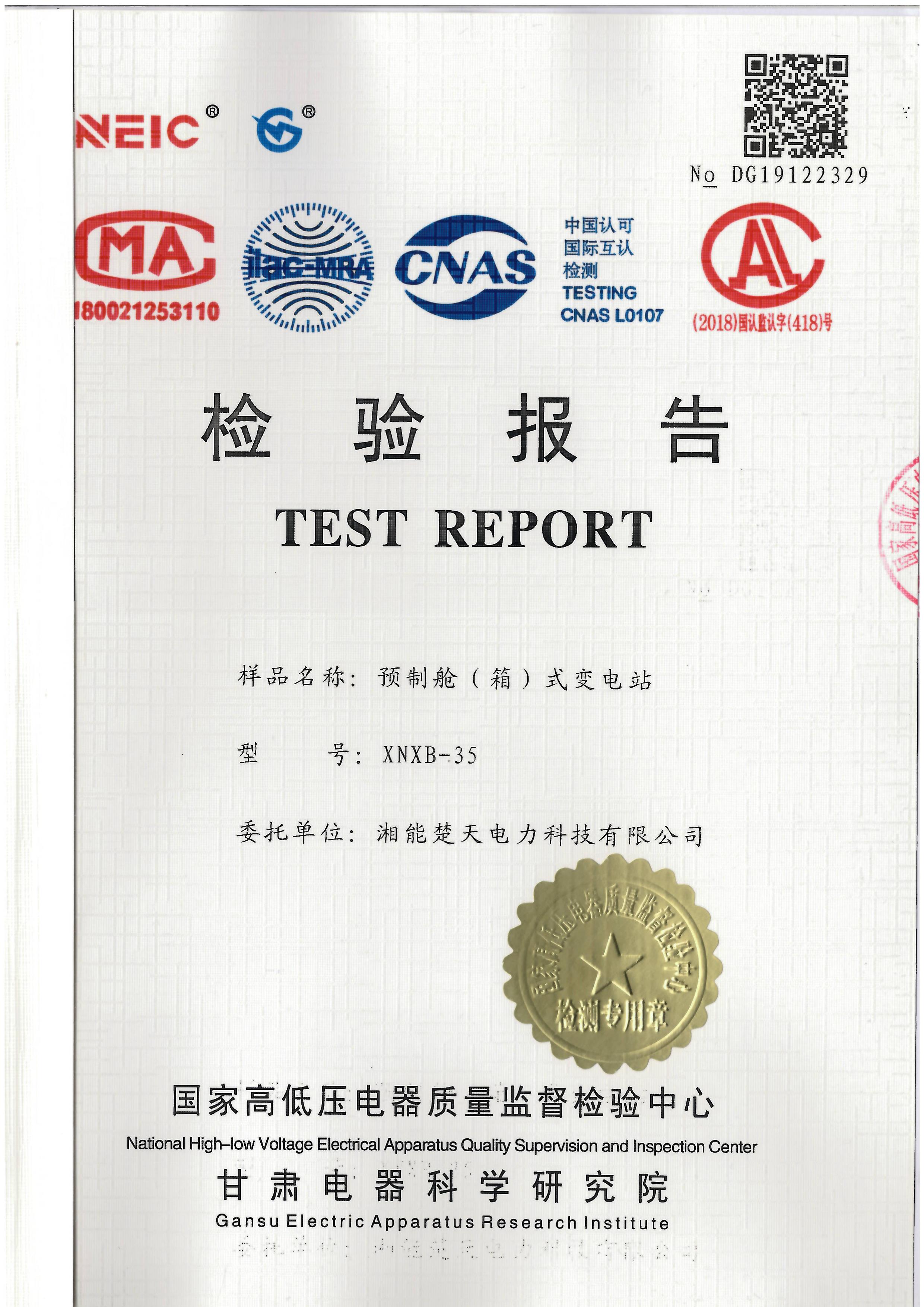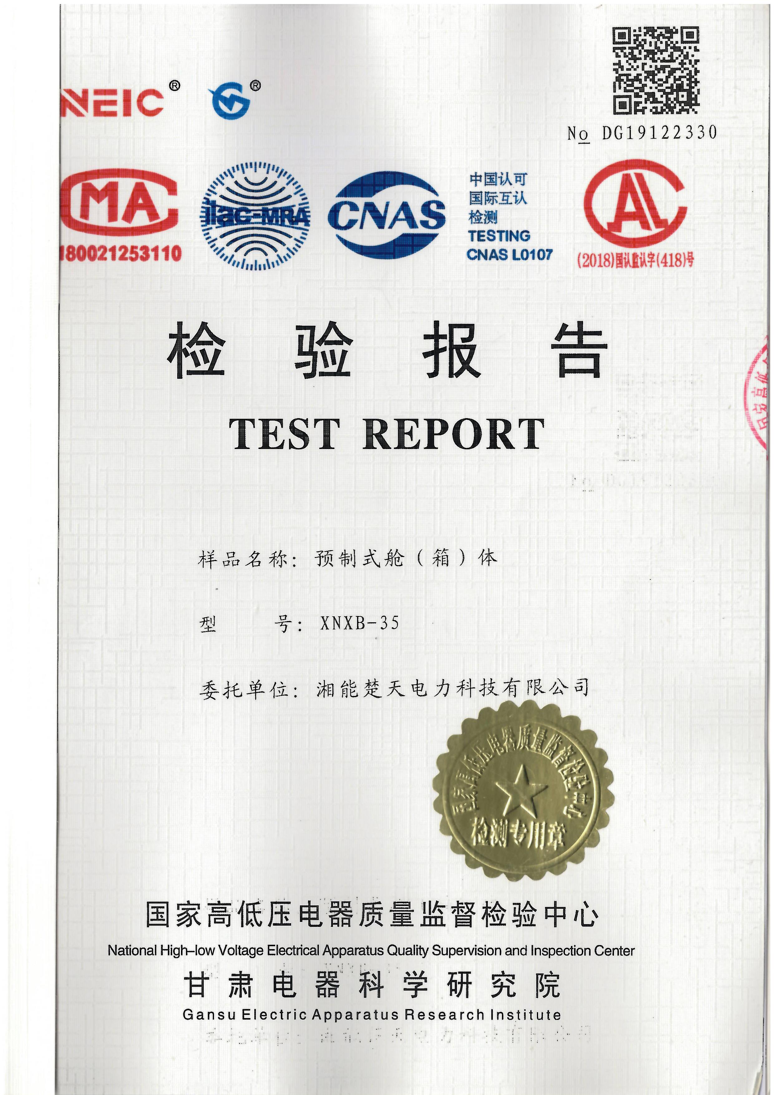 檢測報告預裝式智能變電站(預制艙) -