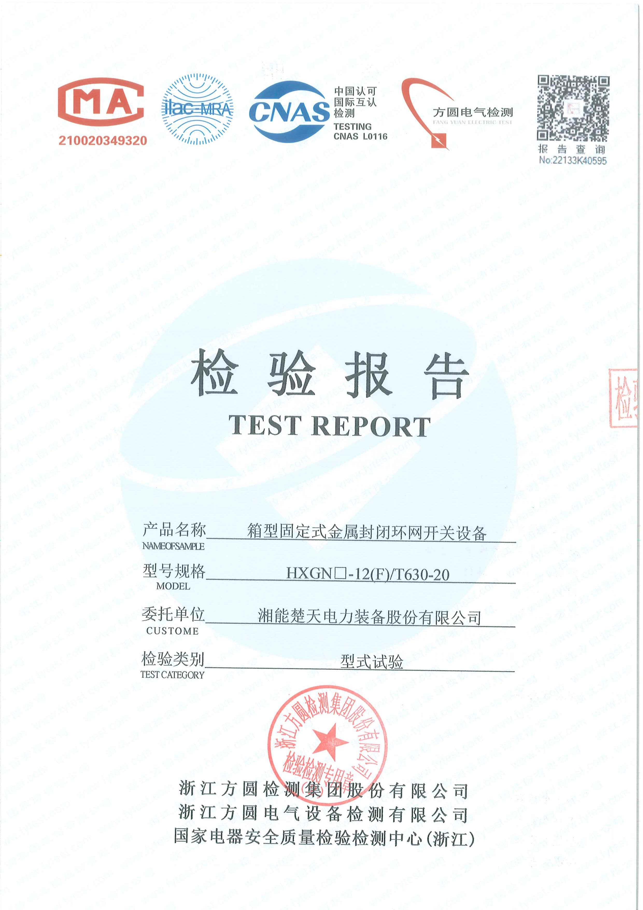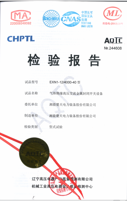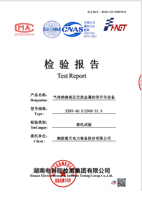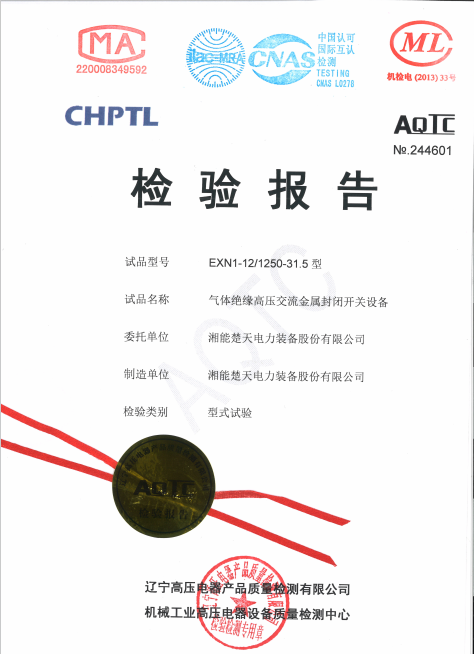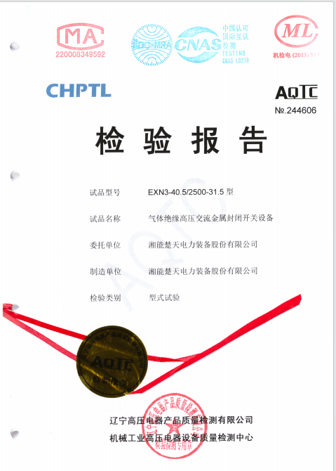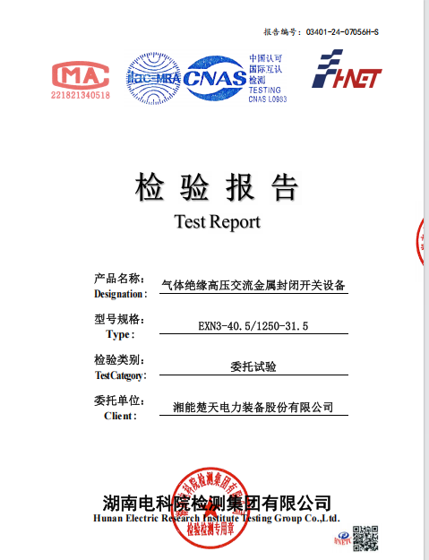 檢驗報告(開關設備 型號EXN3-40.5-1250-31.5) -