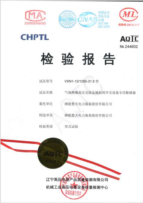 檢驗報告(VXN3-40.5 2500-31.5試驗報告) -