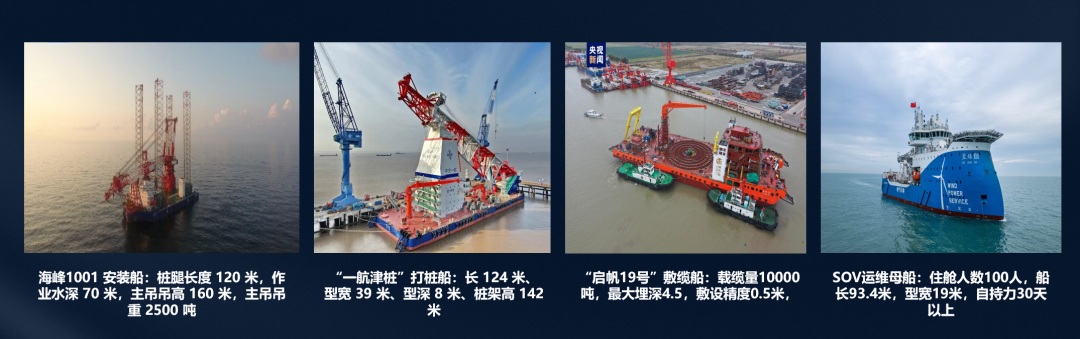 同時(shí),相對(duì)于2021年海上風(fēng)電施工平臺(tái)短缺的狀態(tài),近兩年我國(guó)海上風(fēng)電施工能力有了較大幅度提升,《2023年中國(guó)風(fēng)電行業(yè)深度報(bào)告》統(tǒng)計(jì),截止2023年底,國(guó)內(nèi)共有有海上風(fēng)電施工船舶74艘,其中64艘已經(jīng)投入運(yùn)營(yíng),10艘施工船還處于建設(shè)階段。另外,隨著海上風(fēng)電大型化、深遠(yuǎn)海發(fā)展進(jìn)程加快,大兆瓦的海上風(fēng)電施工平臺(tái)也加速下水交付。